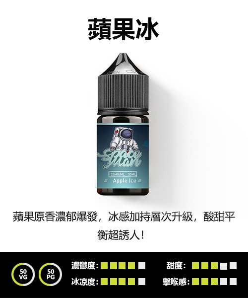 產品名稱:        SPACEMAN SALTS 電子煙油-蘋果冰