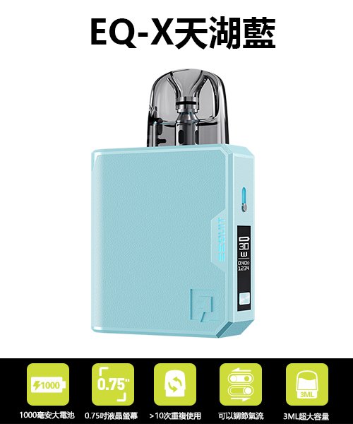 下、藍色正版EEQUIT電子煙主機套裝 |EQ-X系列天湖藍|EQ空煙彈替換倉 1000mAh 30W 大小煙媲美 VOOPOO OXVA主機